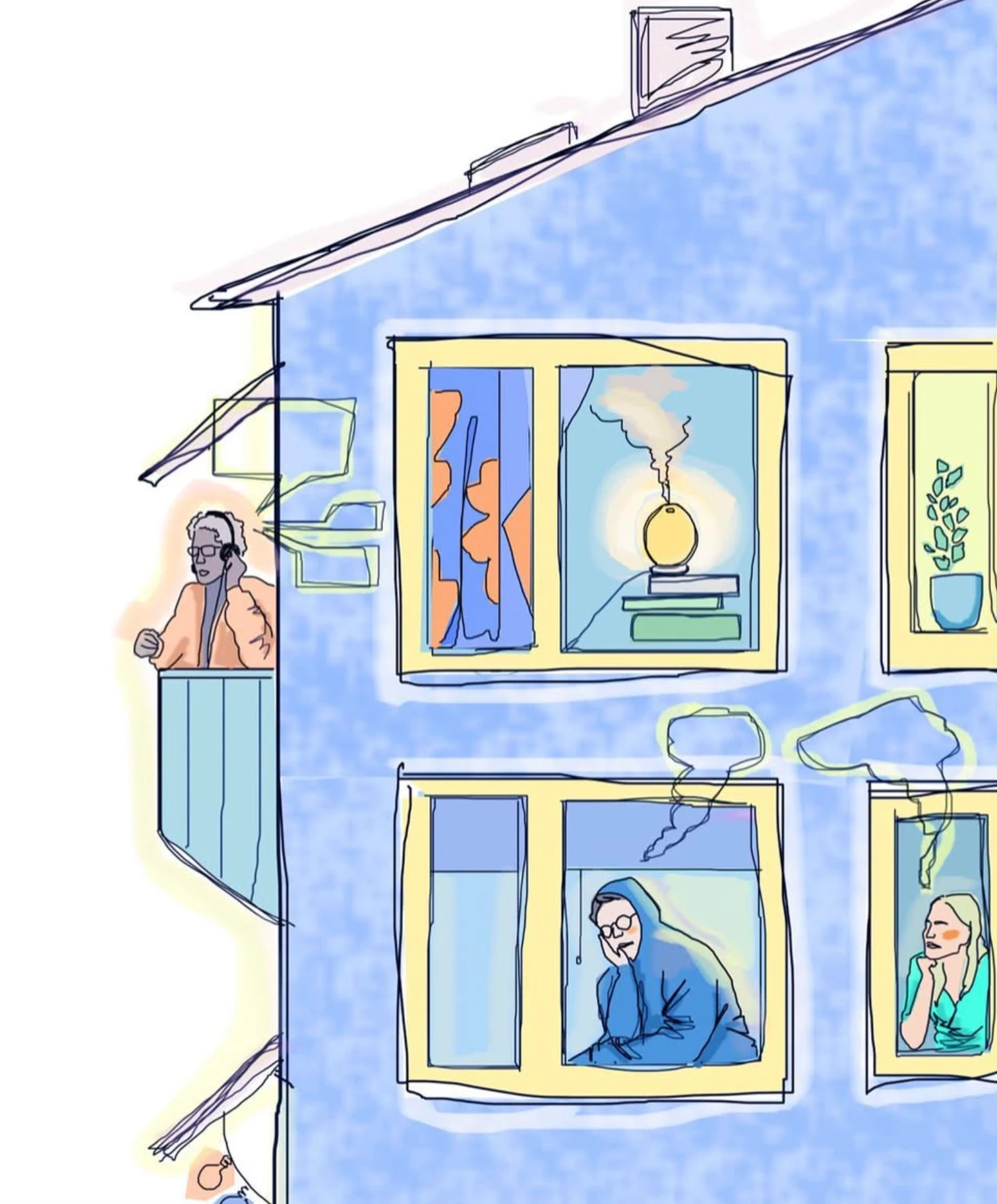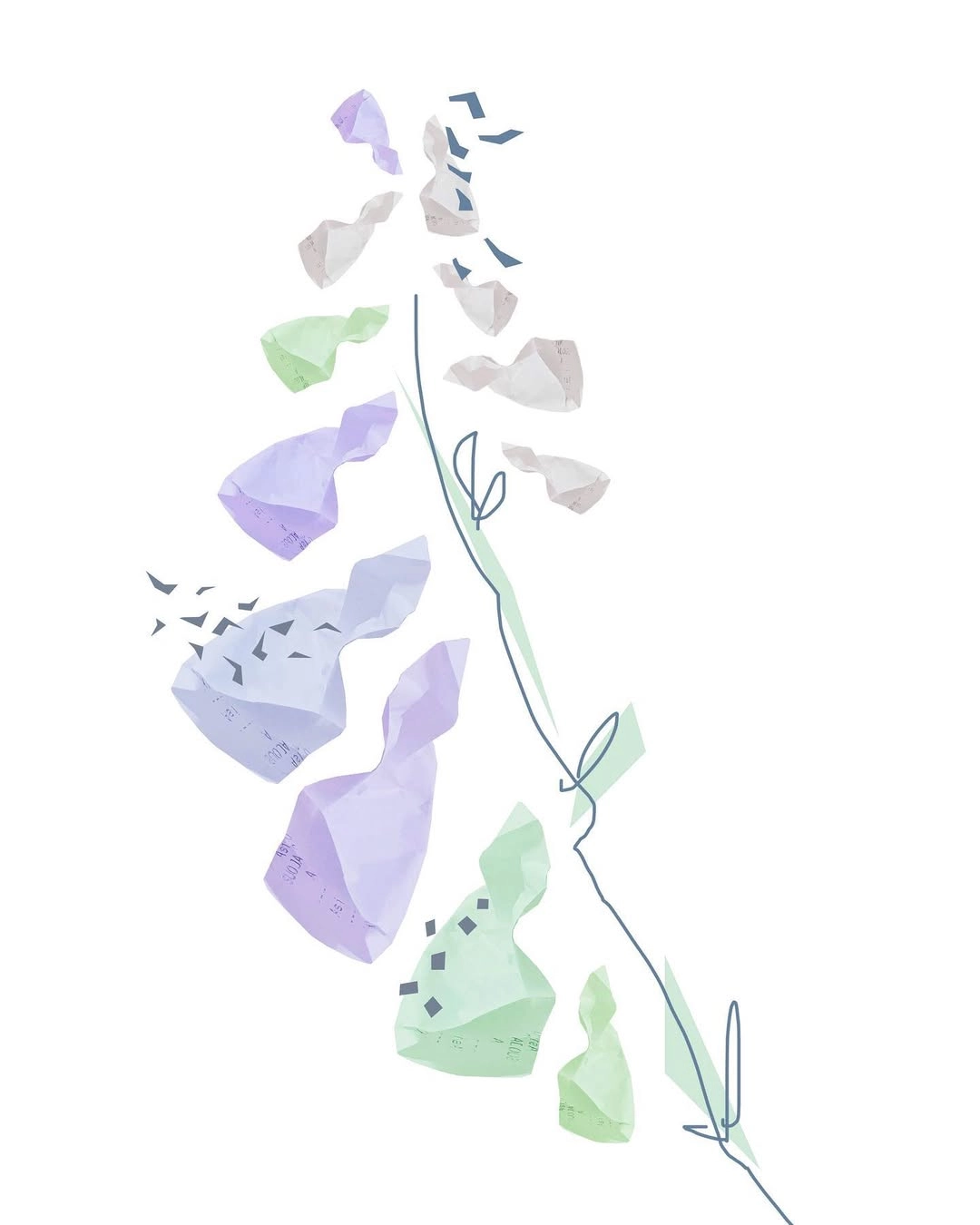 This piece stands out from the others because of its vibrant palette. The client wanted strong colours, and I truly enjoyed working with them. It was also the last piece I had time to finish before diving into my new studies at Aalto ARTS.